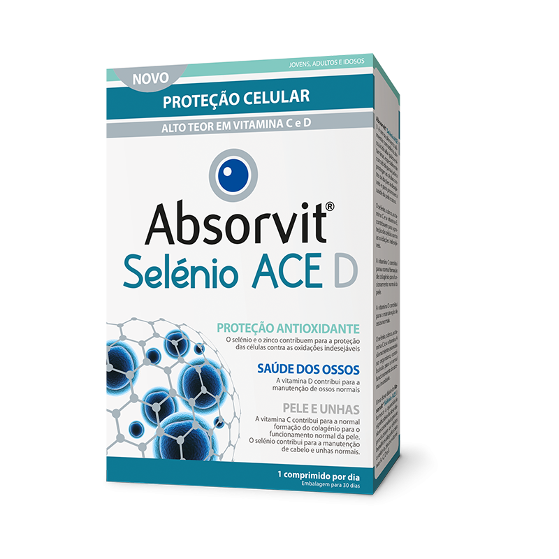 Absorvit® ACE D é um suplemento alimentar com selénio, zinco, ácido alfa-lipóico e vitaminas, especialmente concebido para ajudar a proteger as células contra oxidações indesejáveis e para promover a saúde da pele e ossos