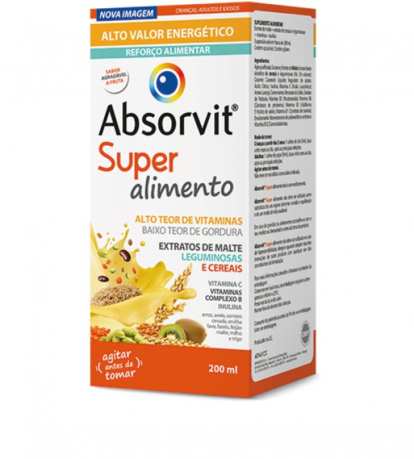 ABSORVIT® SUPER ALIMENTO é um suplemento alimentar, com elevado valor energético, composto por um extrato de malte, cereais e leguminosas, vitamina C, vitaminas do complexo B e inulina. Absorvit® Super alimento é uma ajuda para crianças, adultos e idosos.