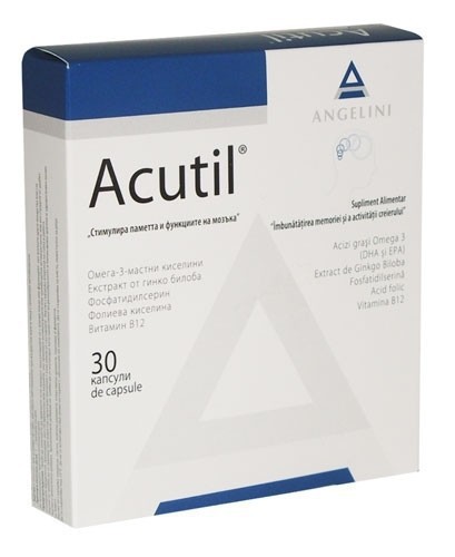 Acutil® é um suplemento alimentar que contém para além de ácidos gordos ómega-3, extrato de ginkgo biloba, fosfatidilserina, ácido fólico e vitamina E e B12, contribuindo para assegurar um aporte suficiente destes nutrientes e responder às necessidades variáveis do organismo.