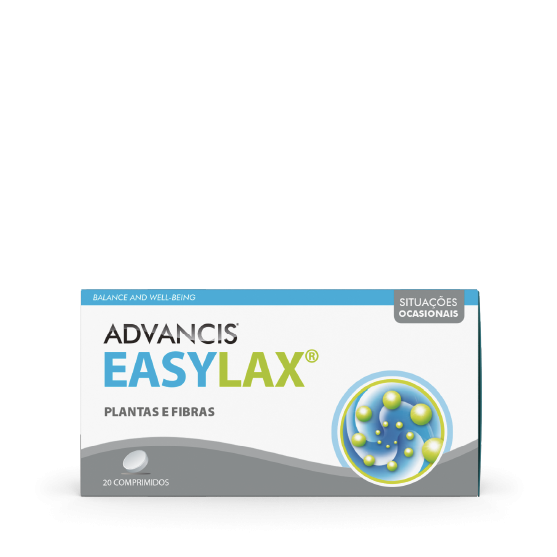 Advancis® Easylax é um suplemento alimentar que contém extratos de plantas, fibras, frutos e um complexo de microrganismos, que contribuem para o seu bem-estar e equilíbrio.
