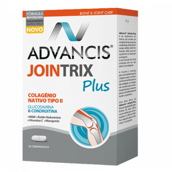 Advancis® Jointrix Plus é um suplemento alimentar que contém um complexo de glucosamina e condroitina de absorção rápida, Metilsulfonilmetano (MSM), colagénio nativo Tipo II e ácido hialurónico, substâncias fisiologicamente idênticas às presentes no organismo humano.