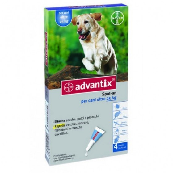 Advantix Cao Sol Uncao 4mlx4 +25kg, 400/2000 mg sol unção punctif VET