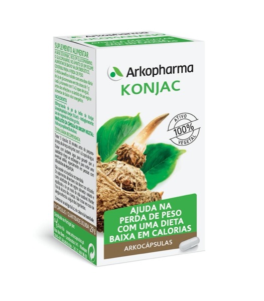ARKOCÁPSULAS Konjac é um suplemento alimentar à base de Konjac, rico em Glucomanano. O Glucomanano, no âmbito de um regime alimentar de baixo valor energético, contribui para a perda de peso. O efeito benéfico é obtido com uma dose diária de 3g de glucomanano em três doses de 1g cada, juntamanete com 1 a 2 copos de água, antes das refeições e no âmbito de um regime alimentar de baixo valor energético.