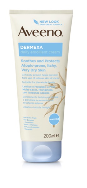 Aveeno® Dermexa Creme Emoliente com complexo triplo de aveia prebiótica (Farinha de Aveia + Extrato de Aveia + Óleo de Aveia) e ceramidas ajuda a melhorar e a estabilizar* o equilíbrio do microbioma da pele para uma pele mais resistente e de aspeto saudável desde o primeiro dia. Bebés, crianças e adultos com pele muito seca e com tendência atópica estão sujeitos a crises de secura extrema que perturbam o seu dia-a-dia. Para as prevenir, esta fórmula clinicamente comprovada hidrata e suaviza a pele proporcionando um conforto imediato. Fórmula de elevada tolerância. Sem fragância. *Efeito duradouro até 7 dias após a última aplicação Adequado para pele com tendência atópica, aceite pela National Eczema Association dos EUA
