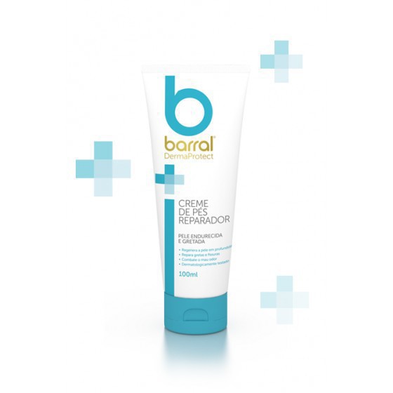 Barral DermaProtect Creme de Pés Reparador - Este creme é composto por ingredientes específicos para o cuidado dos pés, sendo adequado também para o cuidado do pé diabético. A sua fórmula estimula a regeneração celular, hidratando a pele em profundidade. Repara gretas e fissuras e previne o seu reaparecimento. Além disso, combate o mau odor. Estudos clínicos demonstraram que o creme aumenta a hidratação da pele em 21% ao fim de 15 dias e 44% ao fim de 30 dias. Composição: - Manteiga de karité: hidratante e regeneradora - Cera de abelhas: emoliente e protetora - Triclosan: antimicrobiano