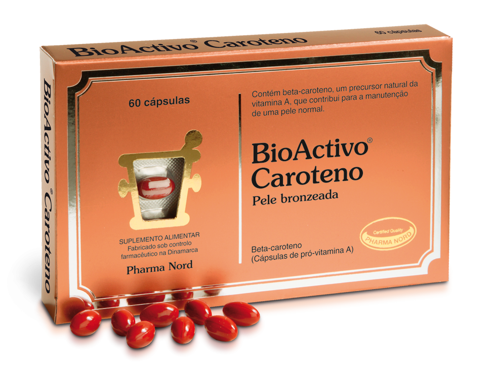 BioActivo Caroteno contém beta-caroteno puro equivalente a 1500 μg de vitamina A, que contribui para a manutenção de uma pele e visão normais.