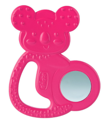 Este anel de dentição em forma de coala combina um mordedor de silicone, seguro e agradável para mastigar, com uma inserção de aço inoxidável higiénica e eficaz que refresca mais rapidamente.