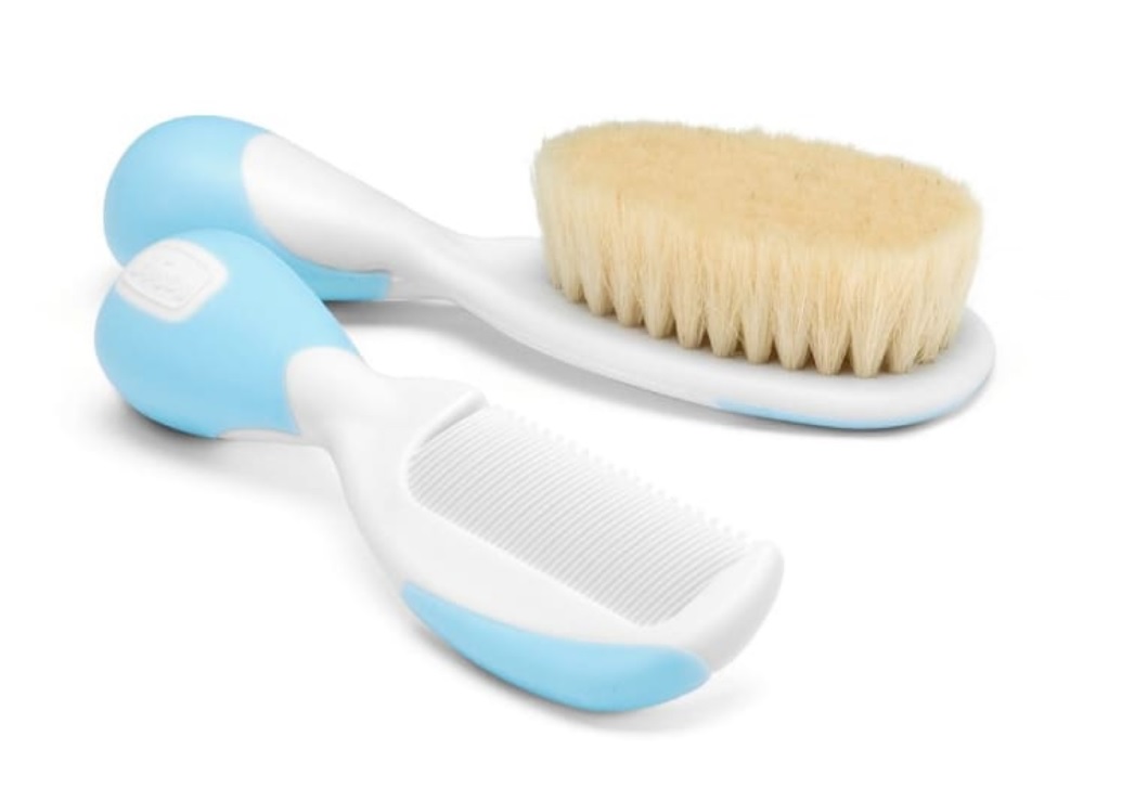 É ideal para o couro cabeludo sensível do bebé, uma vez que a escova é composto por cerdas naturais macias e os dentes do pente têm as suas pontas arredondadas. Ambos têm os cabos largos e ergonómicos, fáceis de segurar e anti-deslizantes.