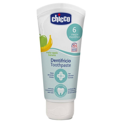 Os dentífricos Chicco contêm Xilitol e flúor (1000 ppm), ingredientes que ajudam a remover a placa bacteriana, prevenindo as cáries. Com sabor a maçã e banana, a pasta de dentes da Chicco ajuda a remineralizar o esmalte, para uns dentes mais fortes e saudáveis.