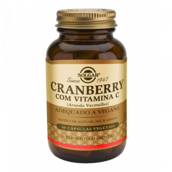 Solgar Cranberry com Vitamina C fornece 500 mg de concentrado de cranberry (arando vermelho) por cápsula. A vitamina C contribui para o normal funcionamento do sistema imunitário. 1 cápsulas tomadas de acordo com o modo de tomar descrito contribui com a dose diária significativa de vitamina C para se obter o efeito benéfico descrito. É importante seguir um regime alimentar variado e equilibrado e um estilo de vida saudável.