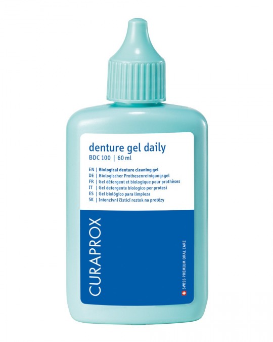 A linha Curaprox BDC oferece um cuidado natural. Contém ácido cítrico, óleo de eucalipto e sal marinho, sem abrasivos, ácido clorídrico e outras fontes de irritação da boca. As dentaduras ficam como novas durante anos e a boca e as gengivas permanecem saudáveis.