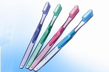 ELGYDIUM VITALE é uma escova de dentes com uma cabeça comprida e arredondada com um cabo antideslizante. Disponível nas referências Suave ou Média, em 3 cores