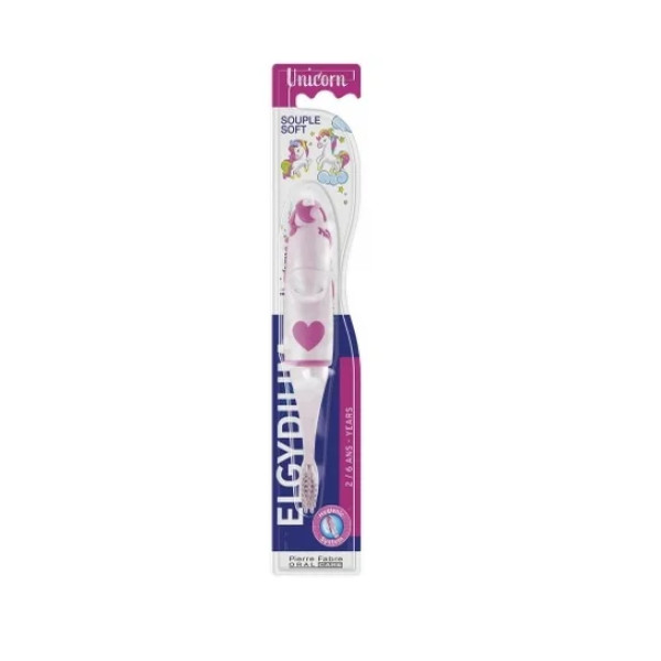 Apresenta, ainda, uma cabeça adaptada ao tamanho do maxilar da criança e um cabo com dimensão ideal para ser agarrado pelas mãos mais pequenas. A escova Elgydium Kids Unicórnio pode também ser levada para todo o lado. Para guardá-la de forma higiénica, basta encaixar a tampa com a cabeça de unicórnio no cabo em formato de chifre de unicórnio. Além disso, tem uma ventosa na parte de trás da tampa, que permite fixá-la verticalmente.