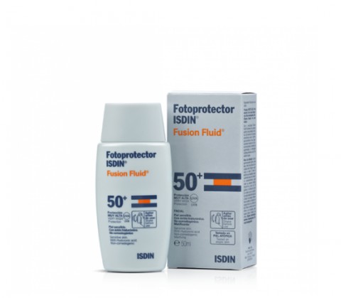 Fotoprotector ISDIN Fusion Fluid com fator de proteção solar muito elevado SPF50+ é uma emulsão ultraligeira que se funde com a pele. A sua textura fluida permite uma aplicação fácil, tendo uma absorção imediata. Este protetor não deixa secar a pele e deixa-a sem brilho.