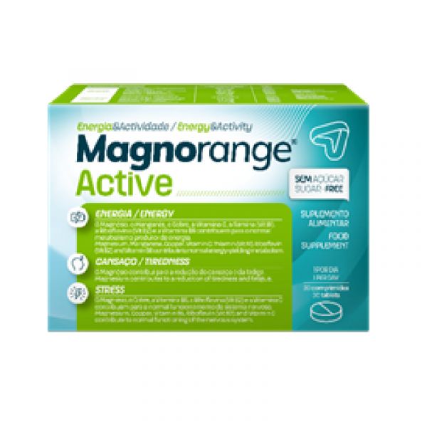 Magnorange Active, é um suplemento alimentar que contém vitaminas e minerais. Com a finalidade de reduzir a sensação de fadiga e de cansaço, bem como, contribui para o normal funcionamento do sistema nervoso.