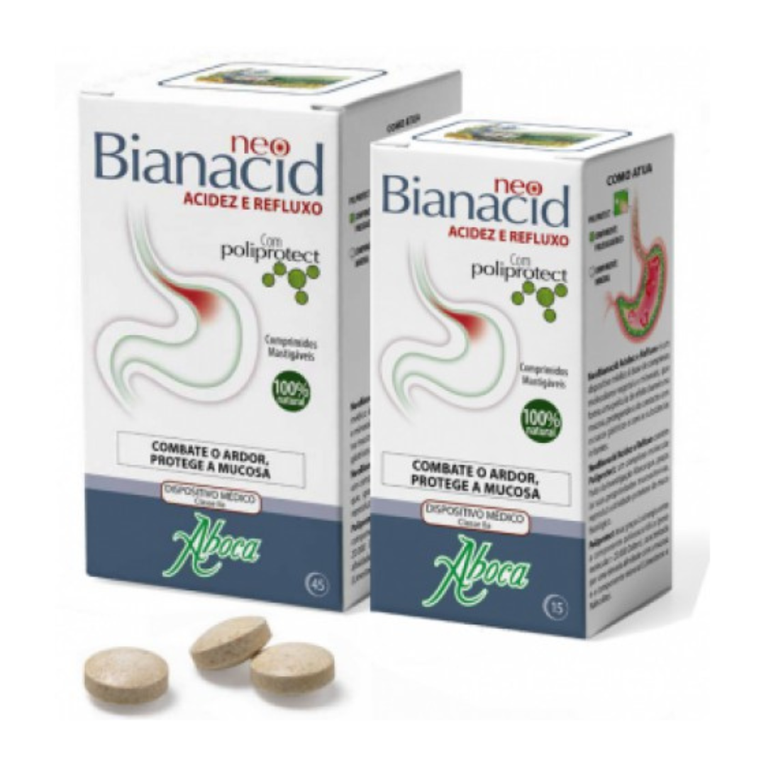 NeoBianacid Acidez e Refluxo é indicado para o tratamento das problemáticas relacionadas com a acidez, como o ardor, dor, refluxo gastroesofágico e gastrite. É indicado também para o tratamento dos sintomas associados à dispepsia (dificuldade de digestão), como o ardor, sensação de estômago pesado e meteorismo.