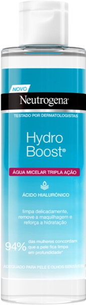 Neutrogena Hydro Boost Água Micelar Tripla Ação tem uma fórmula com Ácido Hialurónico e três tipos de moléculas micelares que atuam em sinergia para proporcionar três ações: