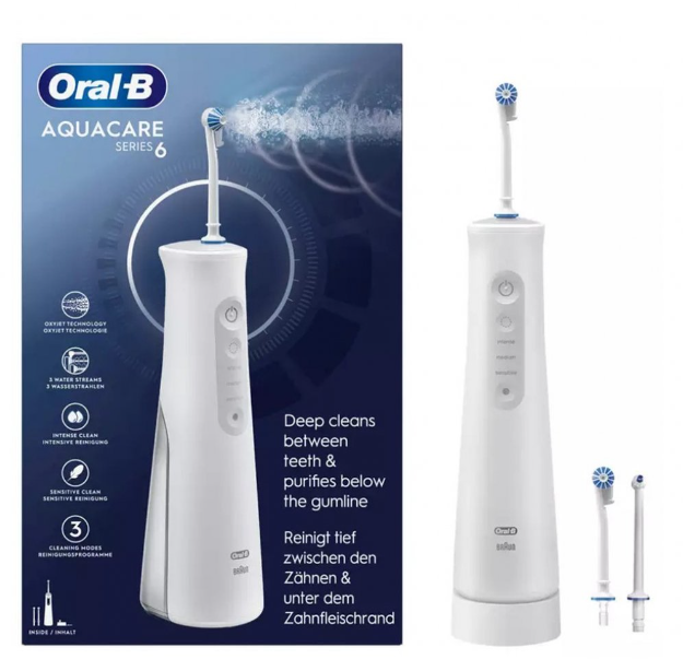 Melhore a sua rotina de cuidados orais com o Oral-B Aquacare Pro-Expert Water Flosser, com a tecnologia Oxyjet para cuidado revigorante das gengivas.