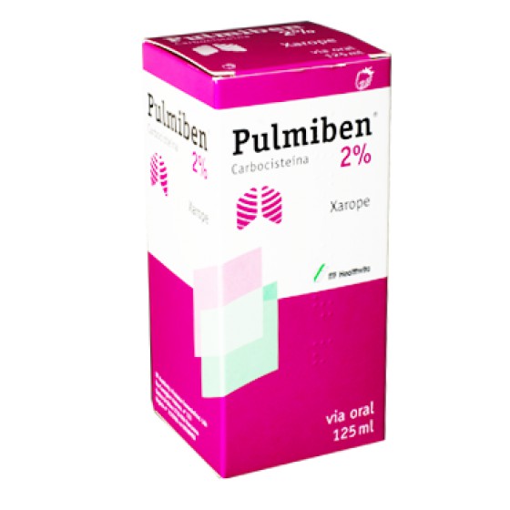 Composição de Pulmiben: A substância activa de Pulmiben é a carbocisteína. Cada ml de Pulmiben 2% contém 20 mg de carbocisteína. Os outros componentes são: sacarina sódica, essência de framboesa, hidróxido de sódio, vermelho de ponceau 4R (E-124), p-hidroxibenzoato de metilo sódico, hidroxietilcelulose, fosfato de sódio dibásico, ciclamato de sódio, ácido cítrico e água purificada.