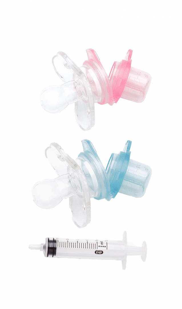 Método confortável e simples para administrar os medicamentos ou vitaminas ao seu bebé. O sistema é composto por uma chupeta com tetina de silicone e uma seringa com medidor e tampa, para a proteger das bactérias e sujidade. A medicação é administrada continuamente enquanto o bebé usa a chupeta.