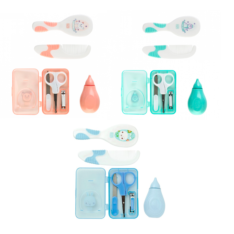Saro Estojo para a higiene do bebé escova + pente de pontas arredondadas + aspirador + tesoura + lima + corta unhas 0M+ 0901