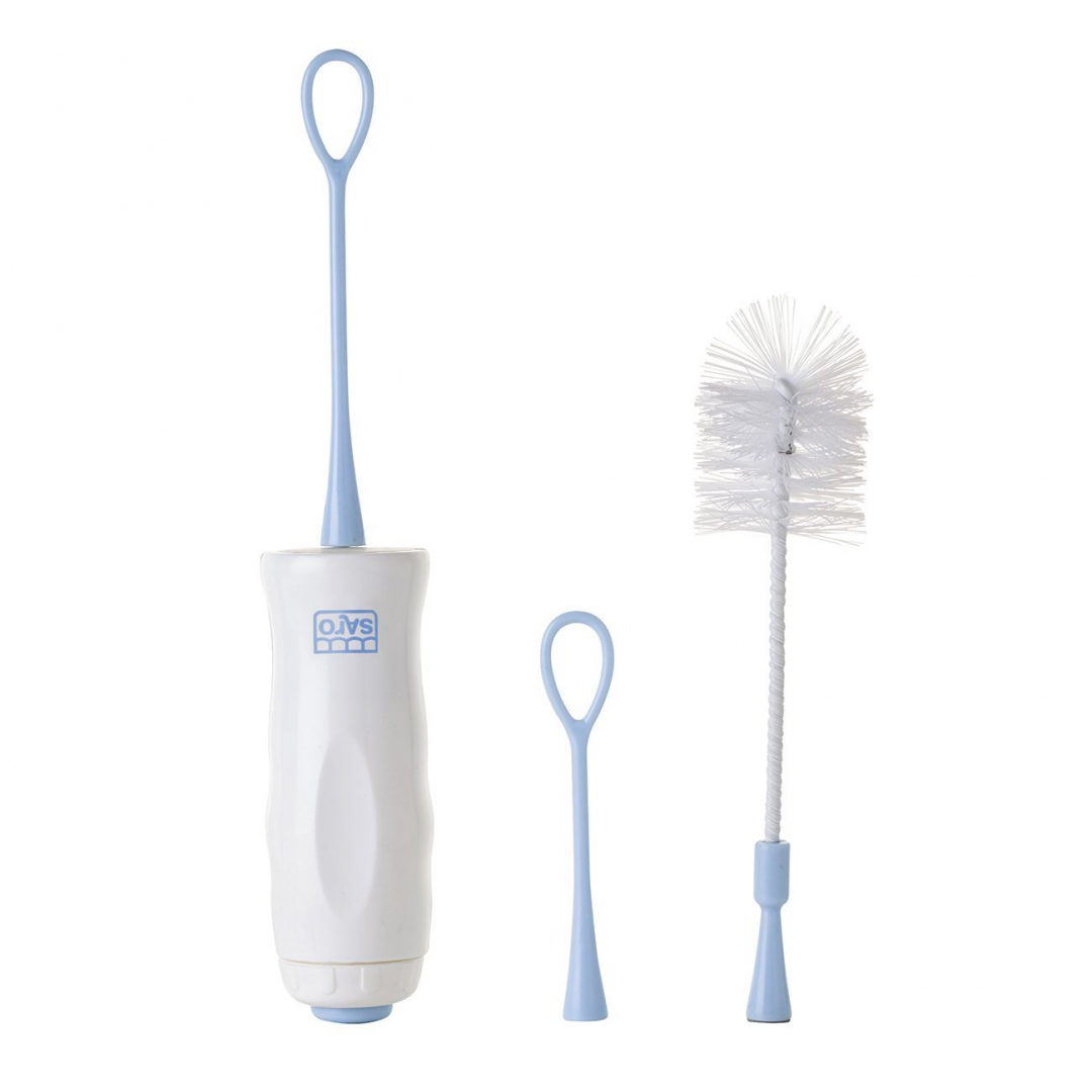 Prática misturadora, que permite dissolver o leite em pó ou cereais, evitando a existência de grumos, ao mesmo tempo que funciona como escovilhão para limpeza do biberão.