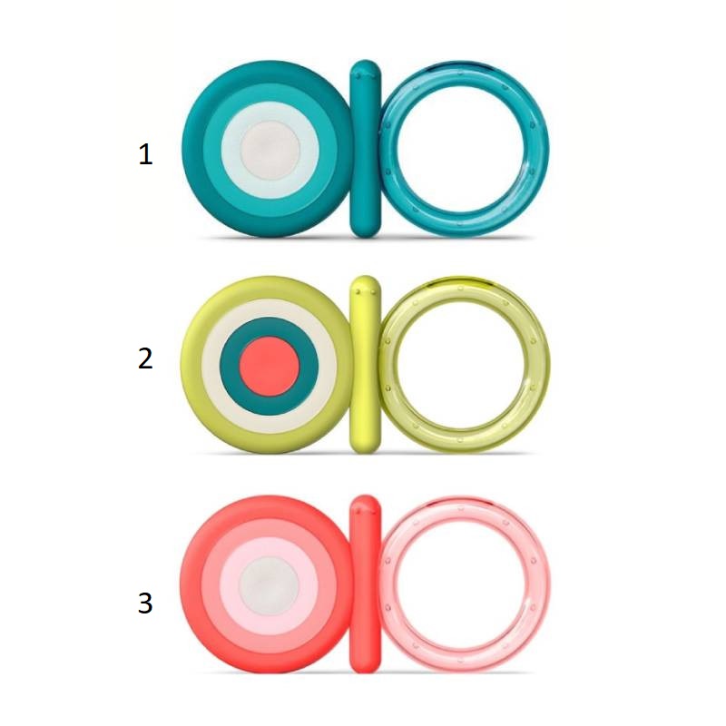 Mordedor refrescante em silicone que massaja a acalma as gengivas do bebé. Devido ao ser formato ergonómico facilita a pega pelo bebé.
