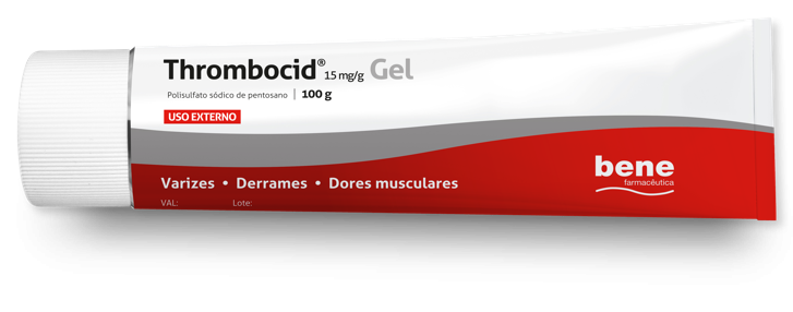 Thrombocid® Gel está indicado no tratamento das dores musculares ligeiras a moderadas, contusões e dores pós-traumáticas; como terapêutica tópica adjuvante do síndroma varicoso e no tratamento das complicações do tratamento com injetáveis (tromboflebites superficiais, derrames/hematomas).